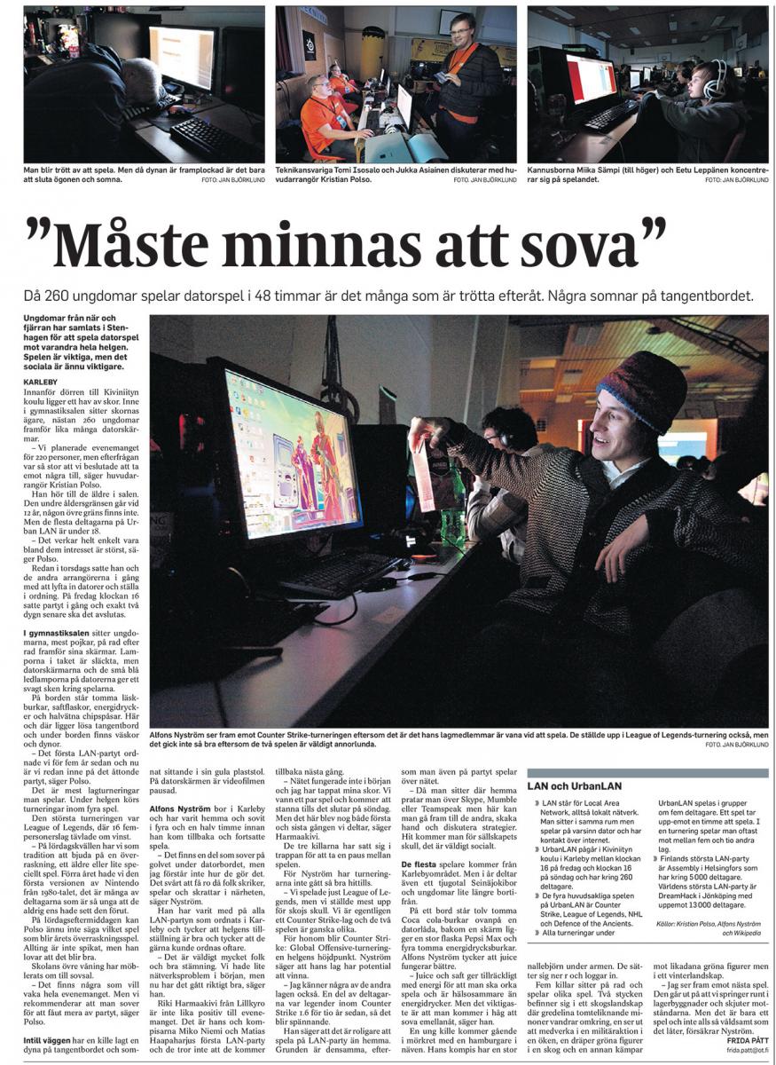 Pelaaja saa kavereita ja kielitaitoa - Keskipohjanmaa Kavereita ja rajaton peliaika – neljän päivän lanit ovat pelaajan paratiisi Laneissa saa mieluusti myös nukkua ja peseytyä - YLE Lue lehtijuttu